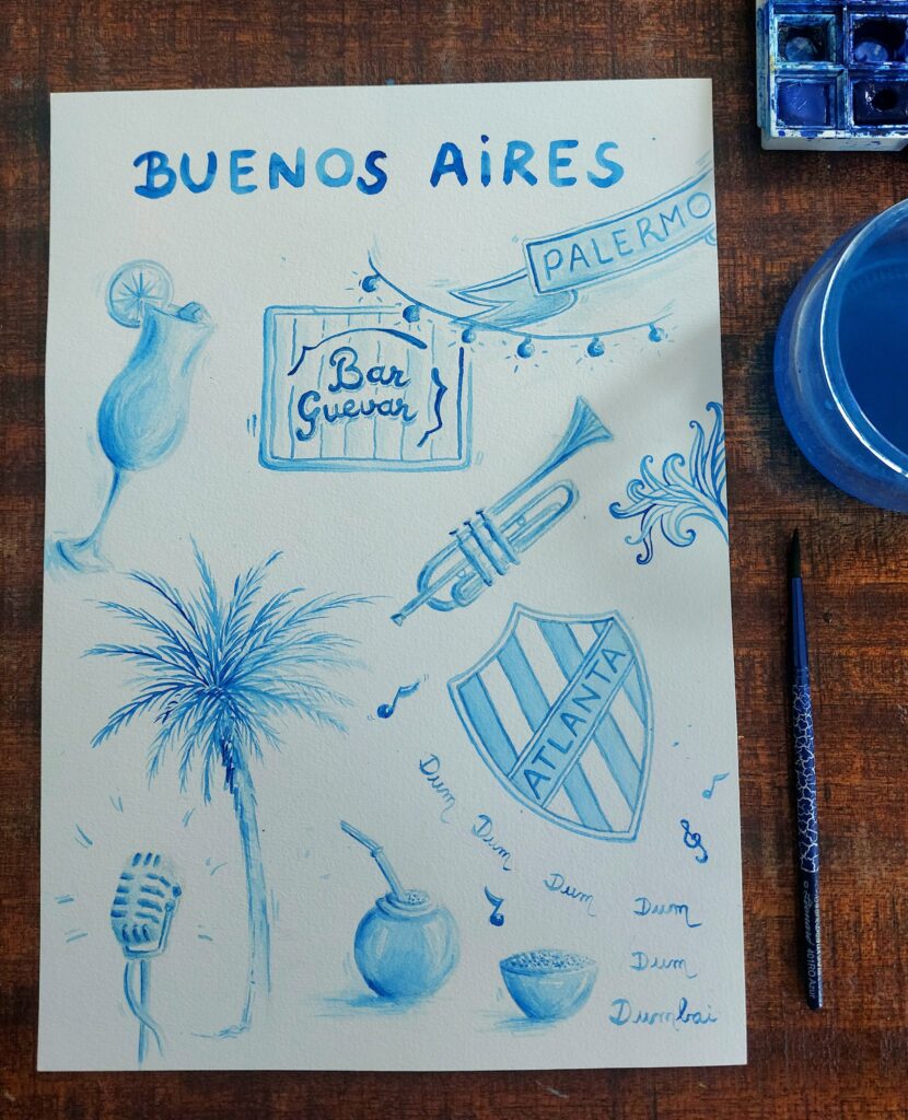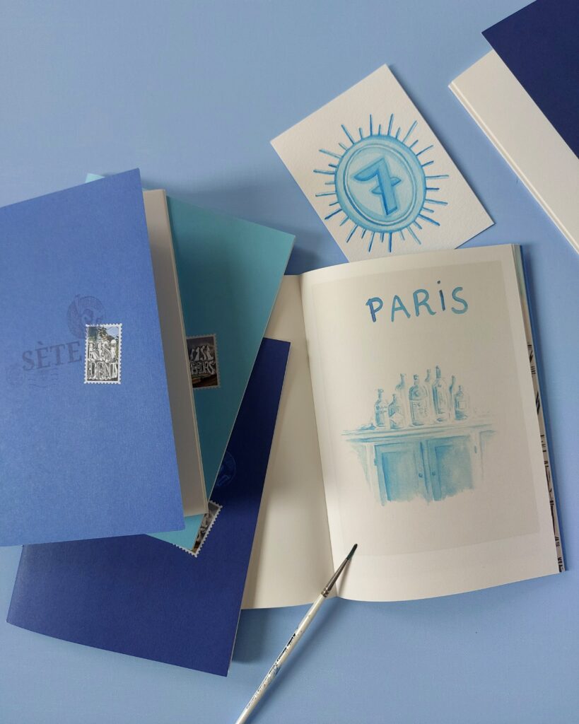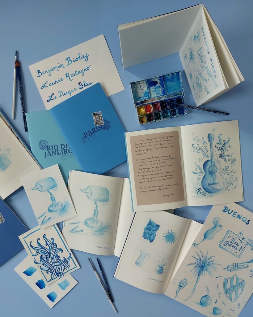 A l’occasion de son nouvel album « Le Disque Bleu », Benjamin m’a confié l’illustration de 4 carnets d’écriture : Sète, Paris, Buenos Aires et Rio.