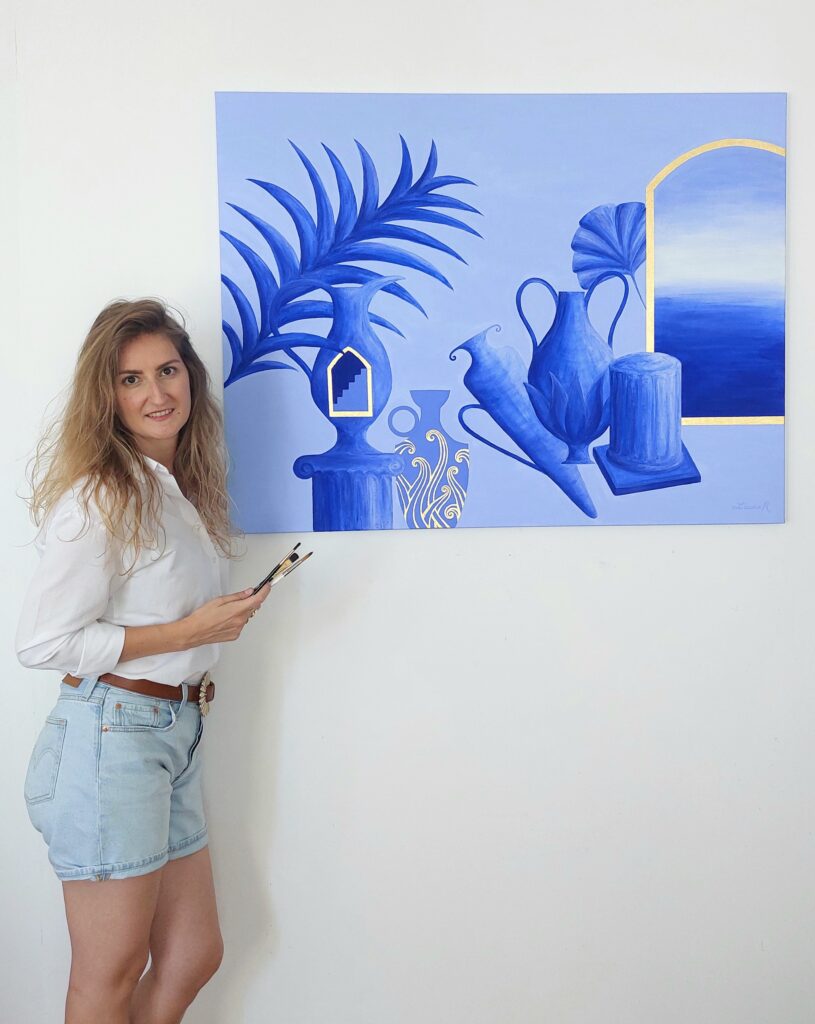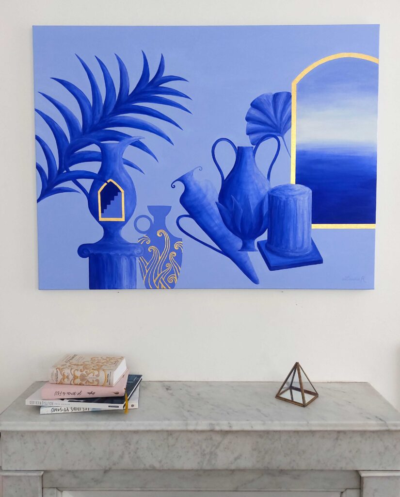 Tout en nuances de bleus et d’inspiration onirique et méditerranéenne.