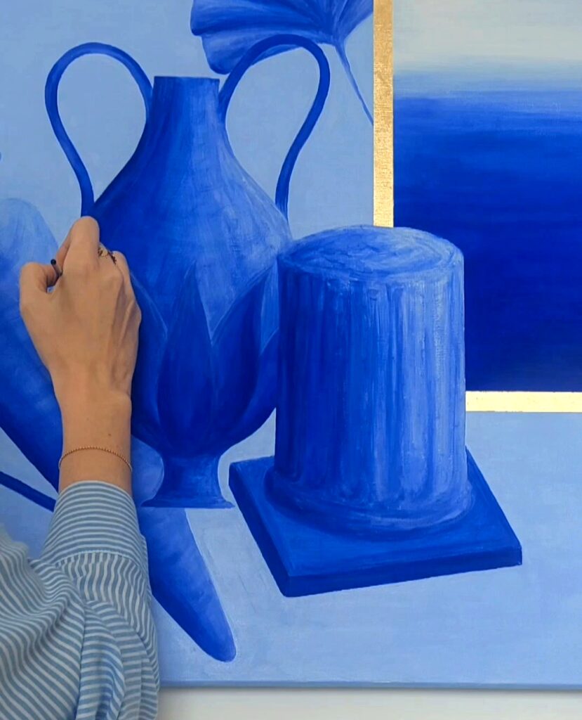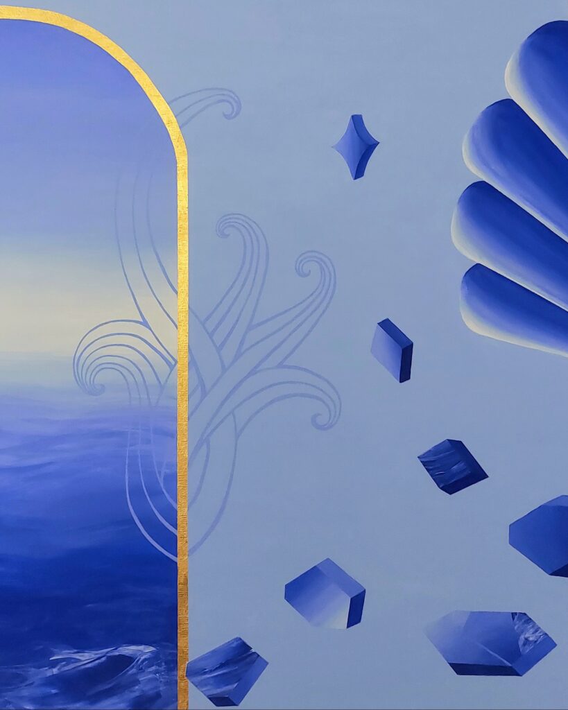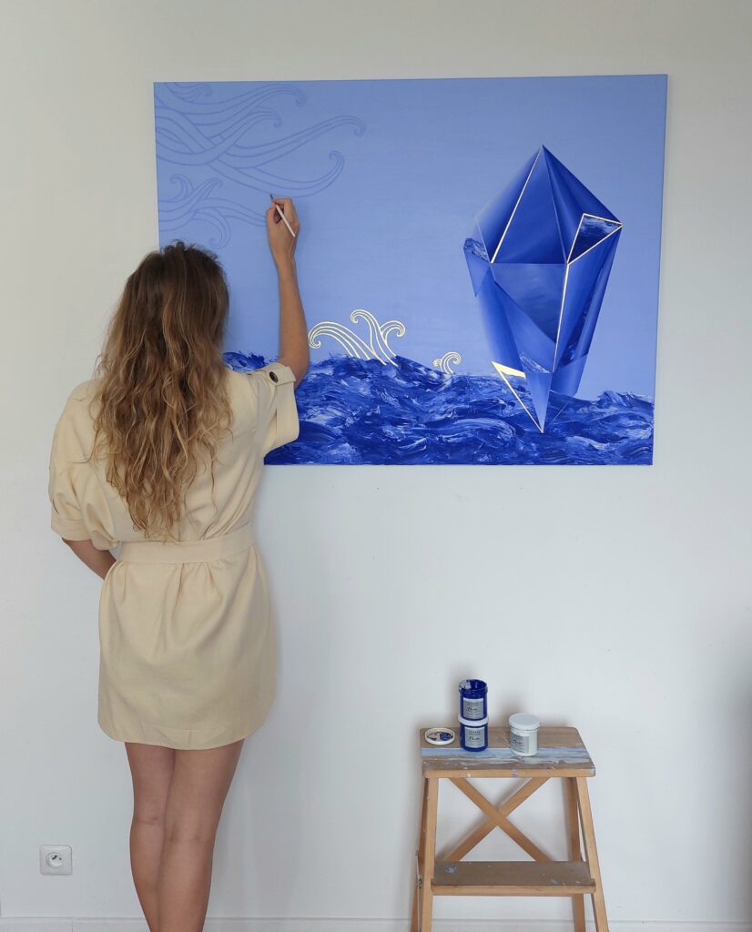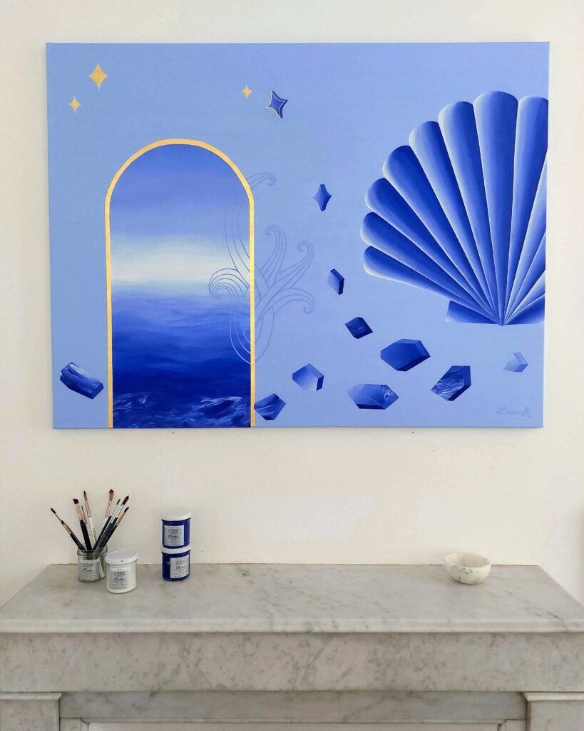 Peintes à l’acrylique et agrémentées de feuilles d’or 24 carats, je vous présente les 3 toiles de la série « Secrets d’Azur » !